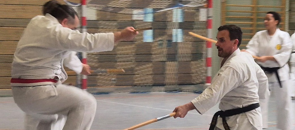 Kobudo ist ein wesentlicher Teil unseres Shorinji Karate Systems. Wir beschäftigen uns mit den alten Waffensystemen aus Okinawa, die ihren Einsatz etwa im 16. Jahrhundert hatten. Die einfache Bevölkerung musste sich gegen die kriegserprobten, schwer bewaffneten Samurais behaupten. Da es dieses allgemeine Waffenverbot auf der Insel gab, nutzten die Einwohner ihre alltäglichen Arbeitsinstrumente, um sie zu Waffen umzufunktionieren. Wir trainieren u.a. mit Bo, Tambo, Jobo, Tekkwa, Sai, Manji Sai, Eku, Kama, Tonfa und Tinbe/Rochin.