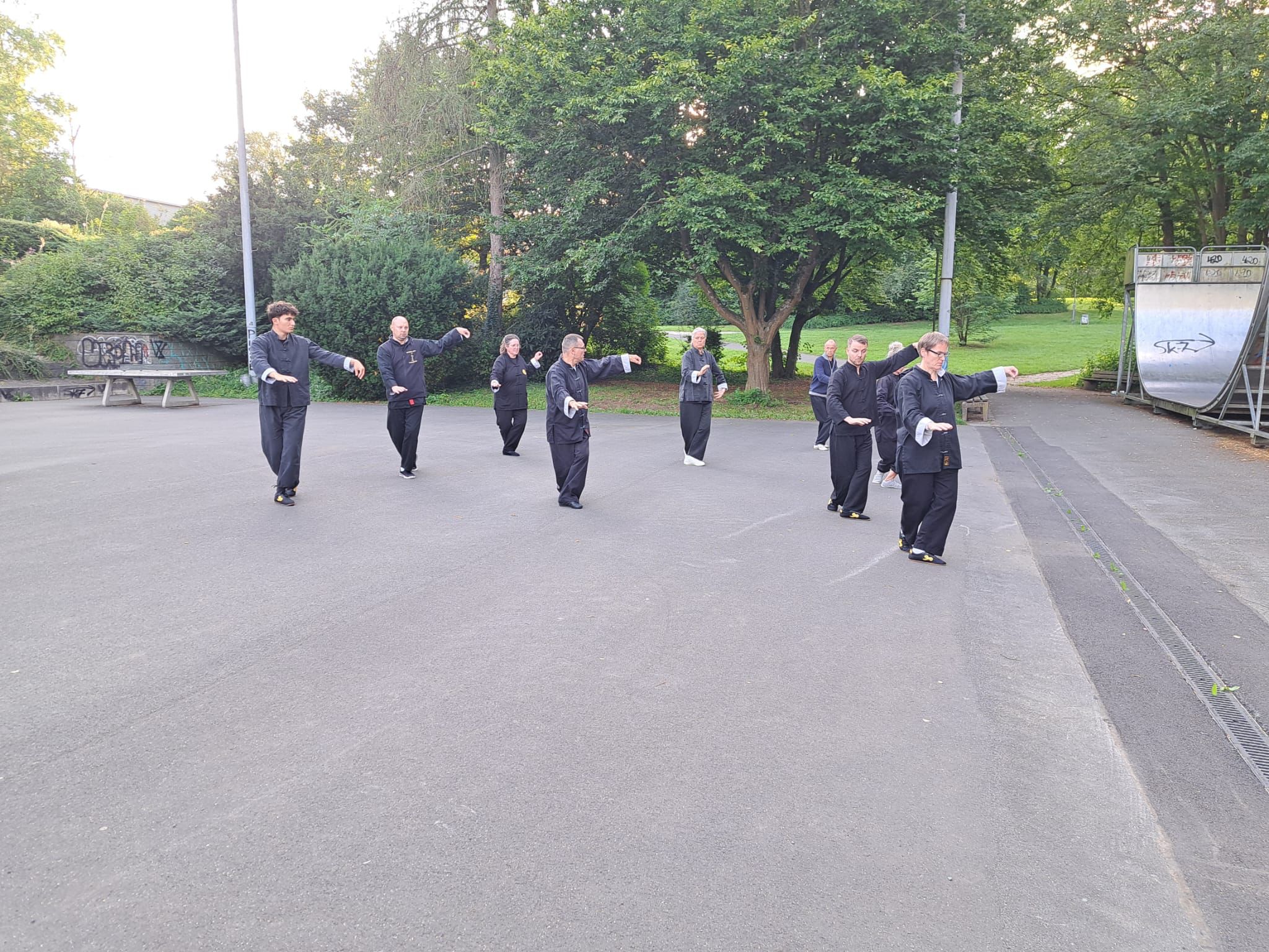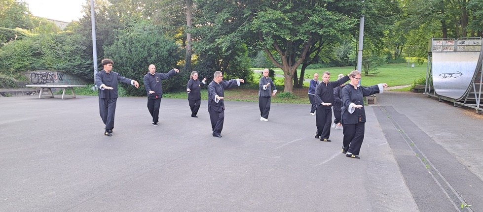 Der Ursprung der Kampfkunst im Tai Chi Chuan ist bei unserer Ausübung der Form noch sichtbar und wird durch die Partnerübungen aufgelöst.