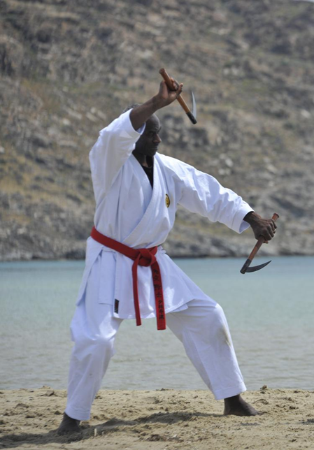 Kobudo ist ein wesentlicher Teil unseres Shorinji Karate Systems. Wir beschäftigen uns mit den alten Waffensystemen aus Okinawa, die ihren Einsatz etwa im 16. Jahrhundert hatten. Die einfache Bevölkerung musste sich gegen die kriegserprobten, schwer bewaffneten Samurais behaupten. Da es dieses allgemeine Waffenverbot auf der Insel gab, nutzten die Einwohner ihre alltäglichen Arbeitsinstrumente, um sie zu Waffen umzufunktionieren. Wir trainieren u.a. mit Bo, Tambo, Jobo, Tekkwa, Sai, Manji Sai, Eku, Kama, Tonfa und Tinbe/Rochin.